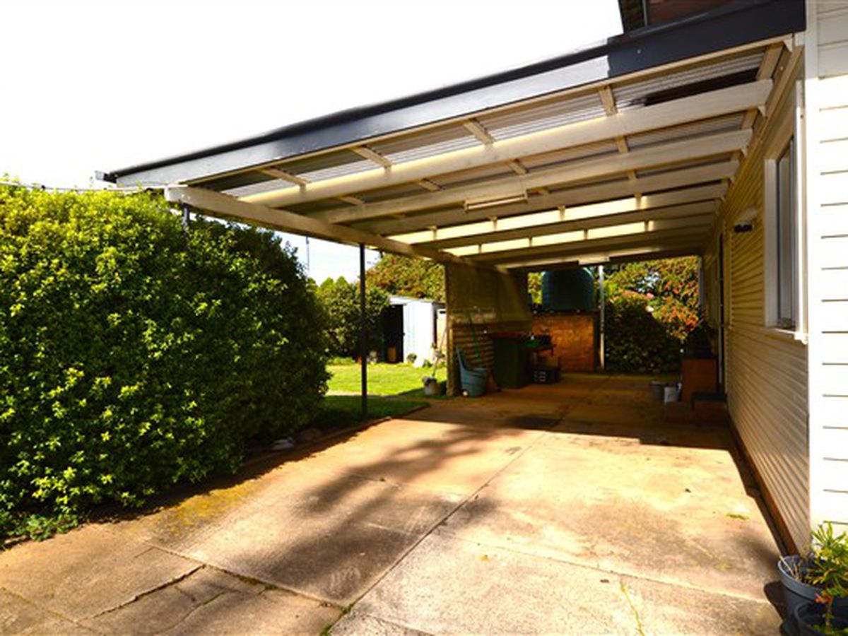 Outside, the home is surrounded by established shade trees and low-maintenance gardens, with extensive yard space and three access points to the property. Additional features include a single garage suitable for storage, extra garden shedding, and a large rear carport that runs the length of the house, providing substantial covered parking.