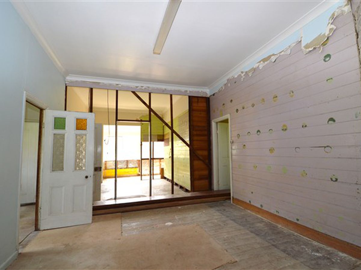 Featuring 5 bedrooms, some with original tongue and groove lining boards and some have gyprock. There are built-ins in 3 of the bedrooms. The flooring is mostly timber boards with some areas of concrete. The kitchen and bathroom have been mostly demolished in preparation for renovation.