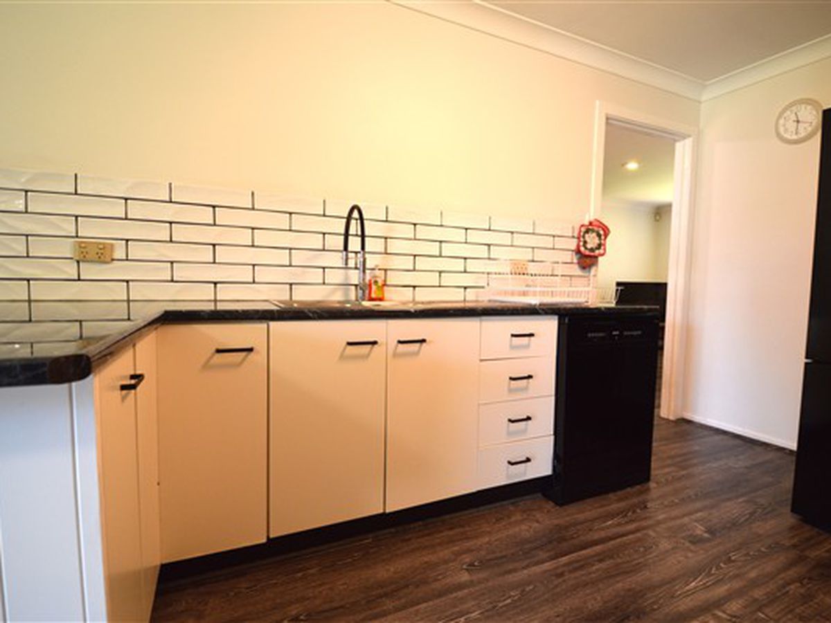 The interior includes two large living spaces, a practical kitchen with dishwasher and ample storage. The primary bedroom offers a private en-suite with shower, while two additional bedrooms with built-ins, provide flexibility for tenants, guests, or home office use. The main bathroom has both bath and shower with the toilet separate. Extra benefits include solar, wood heating and RVC air conditioning. There is a single lock up garage with internal access to both the house and the laundry. Completing the package is a large undercover tiled BBQ area with dual access to the house. The house layout is ideal for a variety of renter profiles.